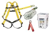 Includes 5-point universal harness, 50' life line with mechanical rope grab, 3' shock absorbing lanyard, reusable roof anchor, and storage bucket. Includes five-point universal harness Includes 50-foot lifeline with rope grab Includes three-foot shock absorbing lanyard Includes reusable roof anchor Products come in reusable, high quality, storage bucket